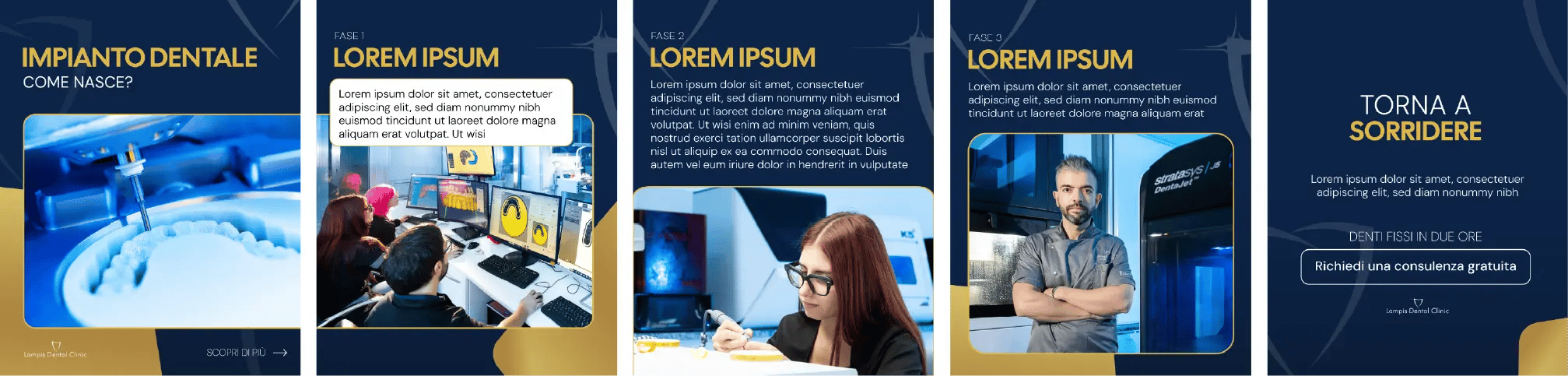 Dallo studio è emersa la necessità di differenziare Lampis Dental Clinic dalle cliniche low-cost, comunicando autorevolezza, esclusività e competenza tecnologica.